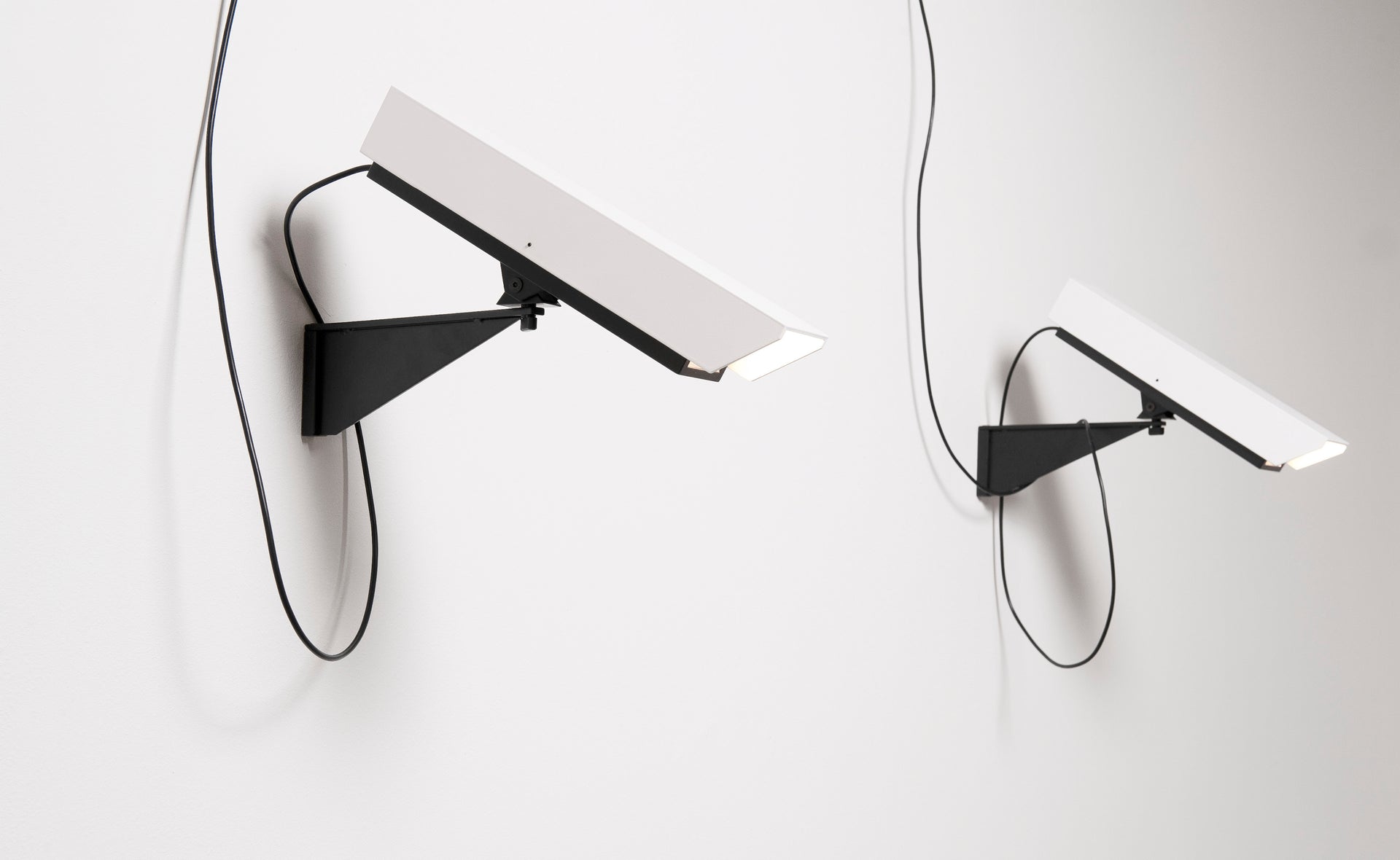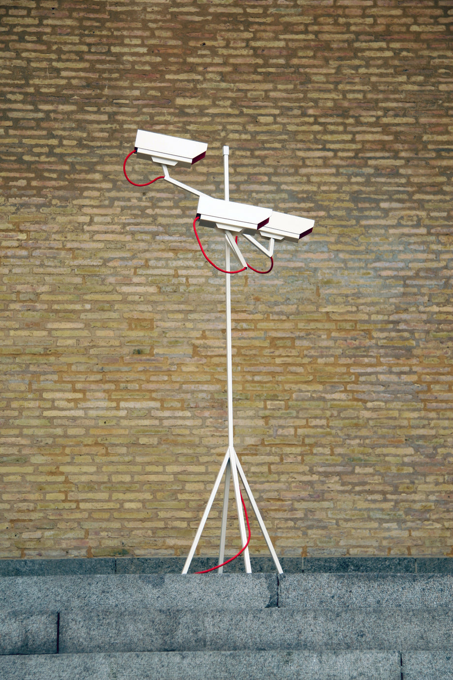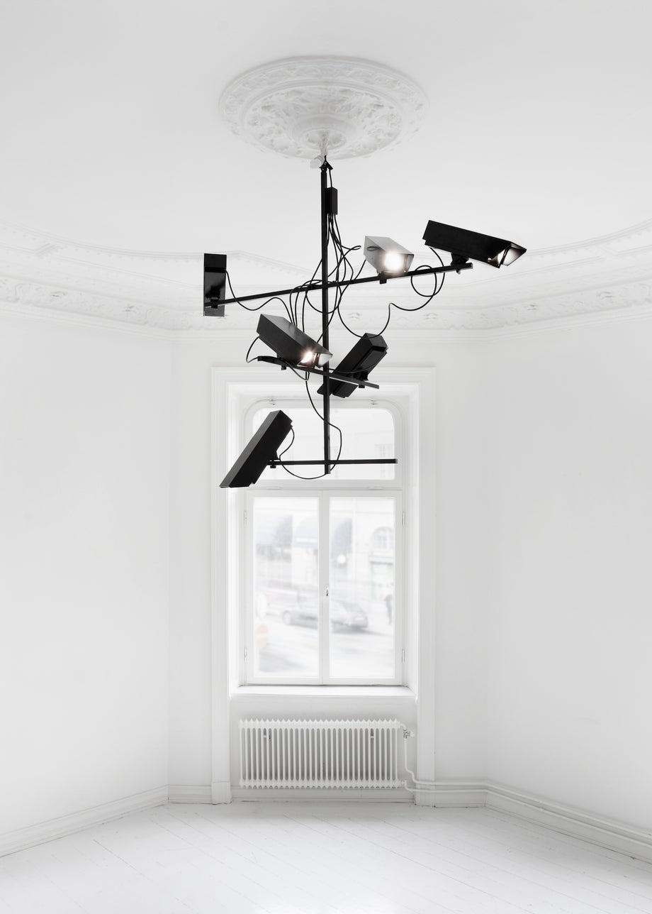 Humans since 1982 very first project is a satirical concept that discusses surveillance in society. With an Orwellian ‘1984’ feel to it, the project blends the typical appearance of a surveillance camera with that of a light, creating an ambiguous reflection on the artists' thoughts about the political future. The concept resulted in four exclusive editions: the original standing lamp, a chandelier, a wall lamp, and a three-meter-high light sculpture.