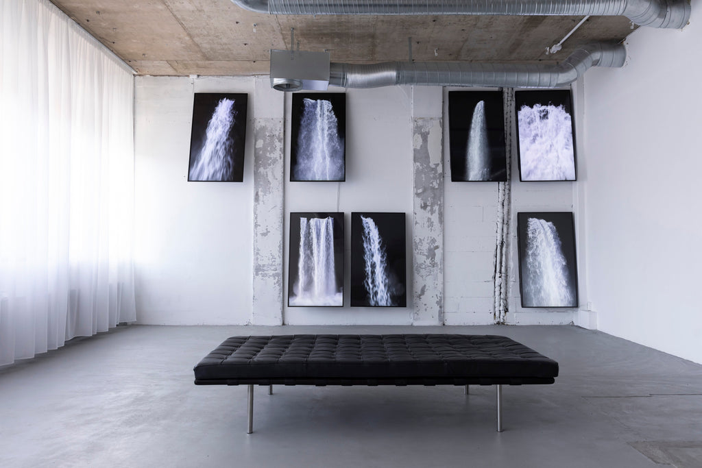 Collection of Motion: Waterfalls (Tiered) comprises twenty unique, digitally simulated loops of waterfalls based on real-world falls.