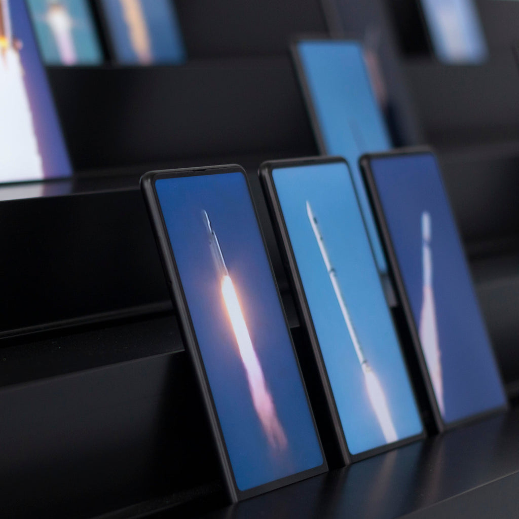 Collection of Motion: Rockets (Hyper Hope), presents found footage of rocket launches atop an alterlike sculpture, accompanied by the looped audio of cheering crowds.
