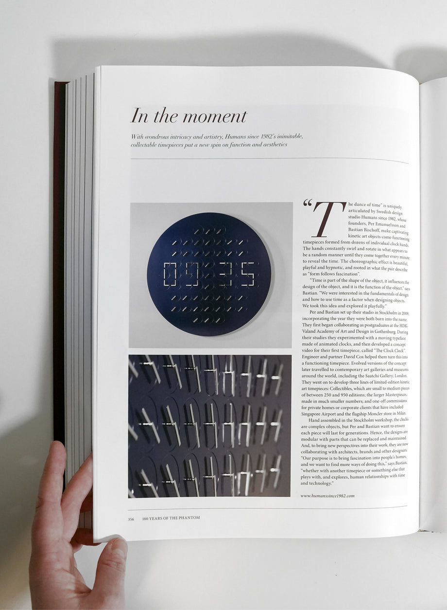 Humans since 1982 was invited to be part of the celebration of 100 Years of the Rolls-Royce Phantom. Initiated by the prestigious Rolls-Royce Enthusiasts’ Club, the celebrations took place at The Peninsula London, where we presented A million Times 72v with golden clock hands.