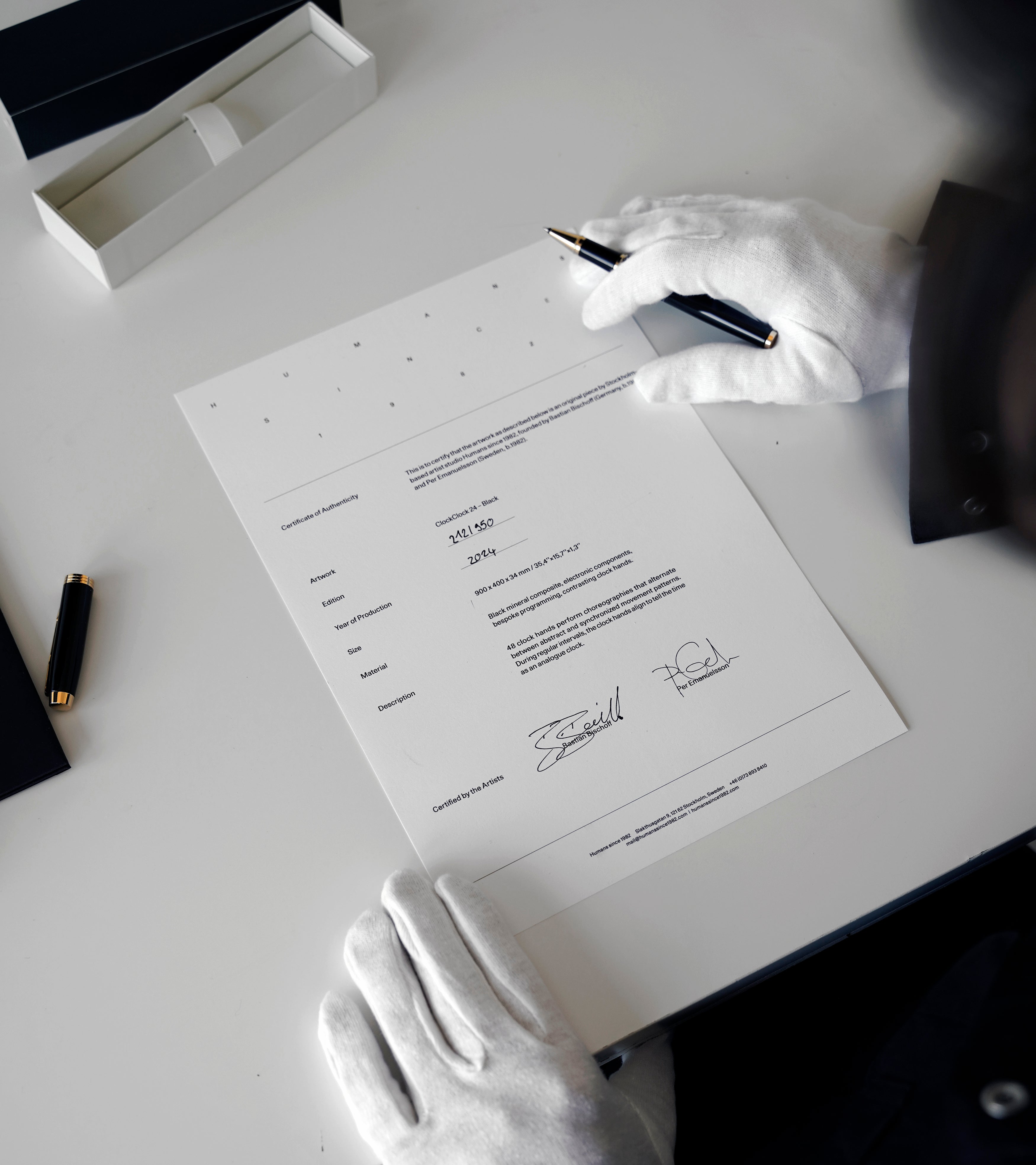 Regardless of the plans for the artwork’s later life, be it a relocation, a refit or archiving for future generations, each piece will always retain its original edition number within the exclusive edition, ensuring its enduring uniqueness. However the journey may look, we are happy to support you along the way.
