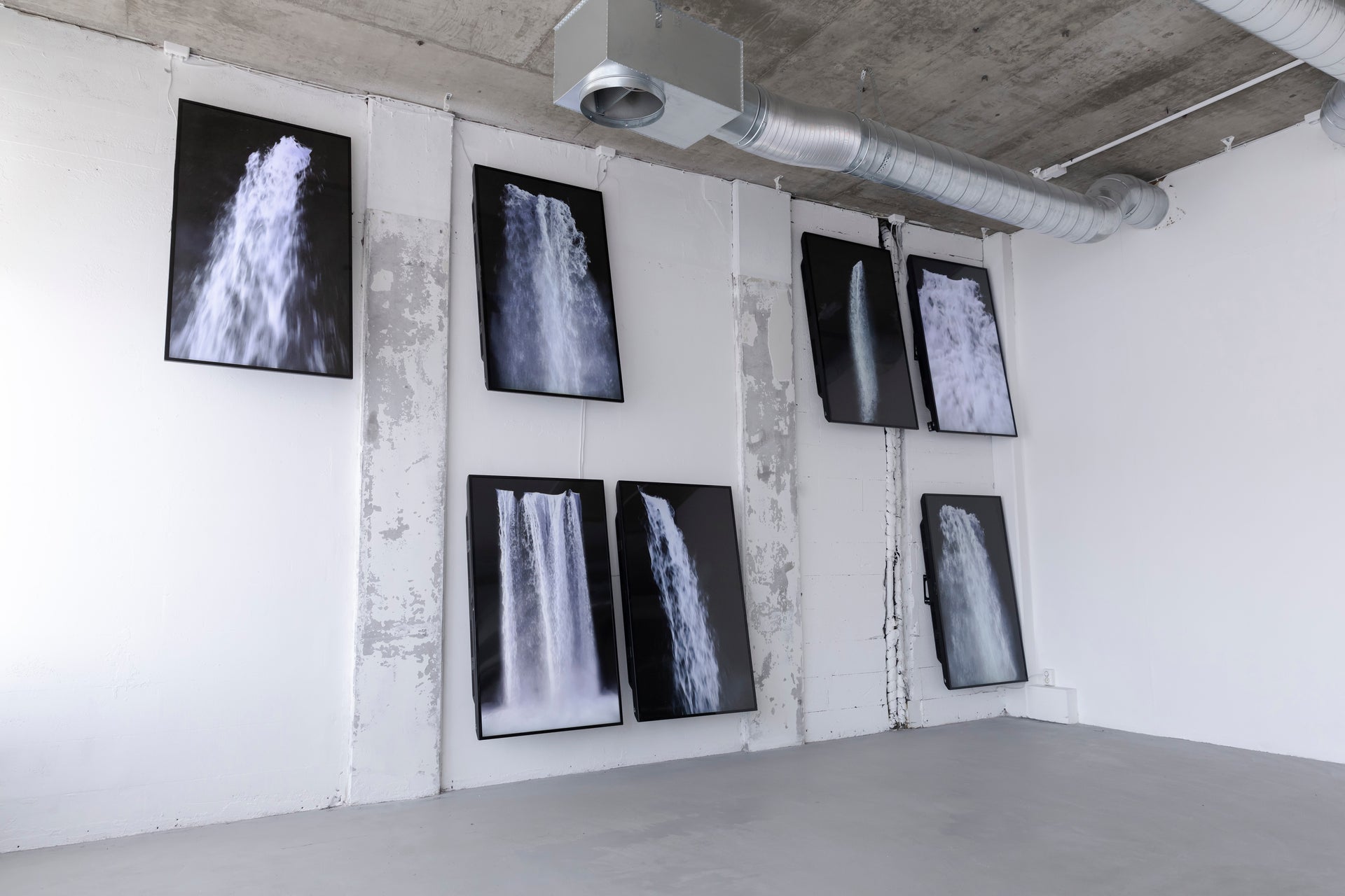 Collection of Motion: Waterfalls (Tiered) comprises twenty unique, digitally simulated loops of waterfalls based on real-world falls.